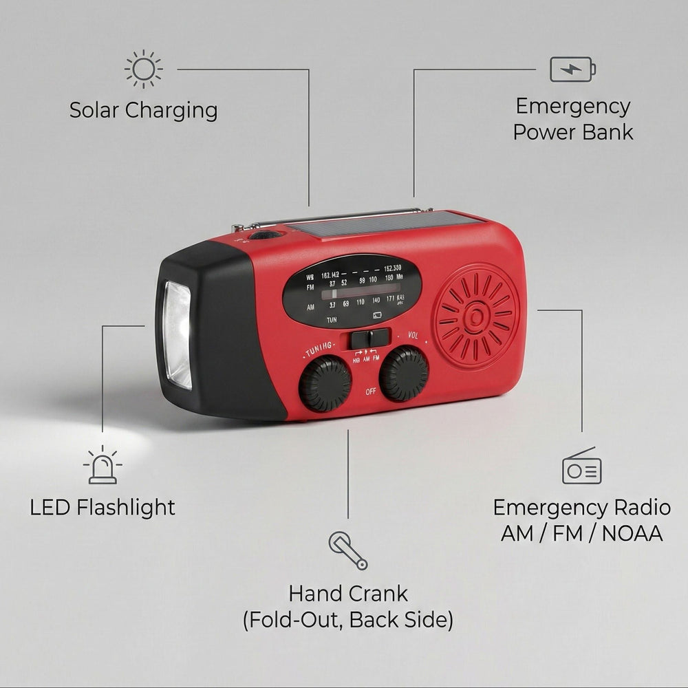 Bleib bei Stromausfällen, Unwettern oder Outdoor-Abenteuern informierte, beleuchtet und erreichbar – ganz ohne Stromnetz! Dieses multifunktionale Notfallradio sichert deine Verbindung und Sicherheit jederzeit.